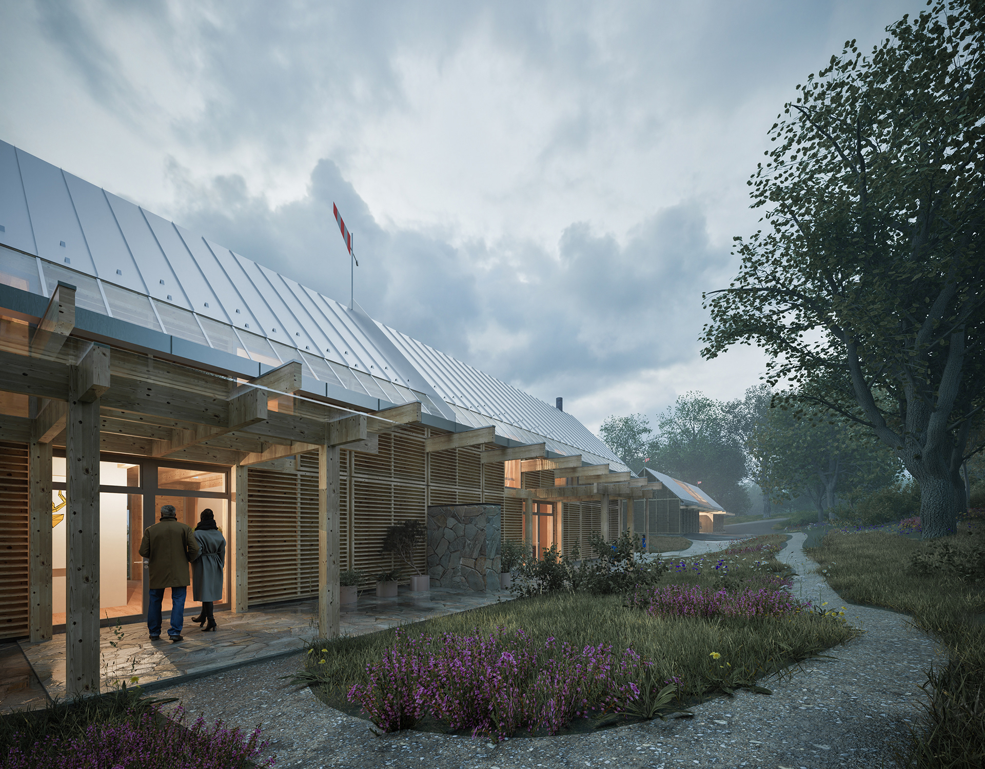 The aim is to create a rural residence for several families, together with the construction of a social centre with a restaurant serving both locals and small groups of tourists visiting the beautiful local landscape of the Bohemian Forest.